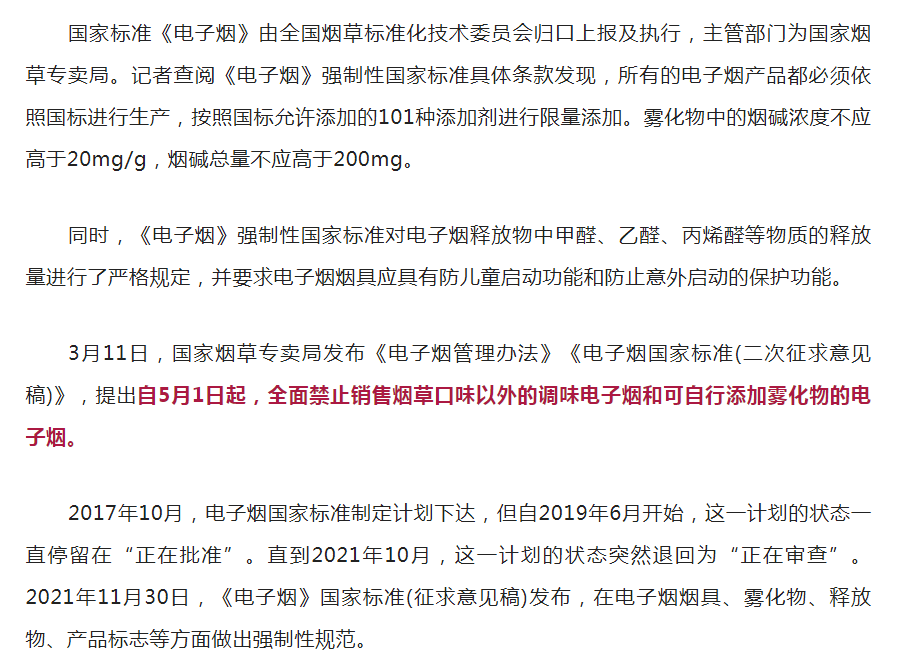 《電子煙》強(qiáng)制性國家標(biāo)準(zhǔn),現(xiàn)予以發(fā)布自2022年10月1日起實(shí)施